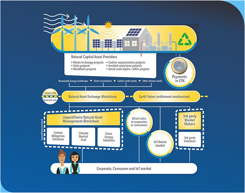 Tujuan dari impactChoice Natural Capital Assets dan Earth Token adalah menggabungkan kekuatan Blockchain dan Cryptocurrency dengan pengalaman bertahun-tahun menciptakan Solusi Keberlanjutan Lingkungan untuk membangun Pasar Aset Aset global yang menghilangkan hambatan saat ini untuk berpartisipasi dalam kegiatan yang melestarikan Lingkungan kita, sambil memberikan semua pemangku kepentingan dengan aset berwujud yang menghargai nilainya seiring pasar tumbuh dan berkembang.