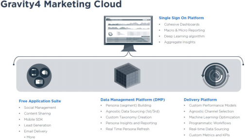Gravity4 menawarkan Cloud Marketing G4, teknologi yang terbukti dengan pasar yang selama bertahun-tahun menggunakan data pelanggan dan penempatan gabungan untuk mengoptimalkan penempatan. Dengan menggunakan analisis cerdas dan membeli iklan perangkat lunak, Gravity4 menggunakan data besar secara real time.